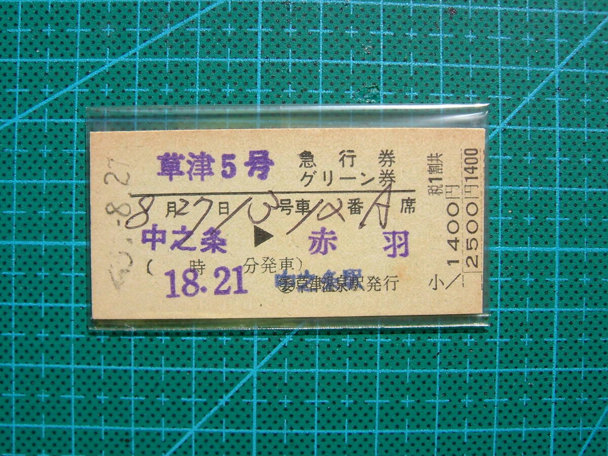 - 国鉄 草津5号 急行券 グリーン券 中之条⇔赤羽
