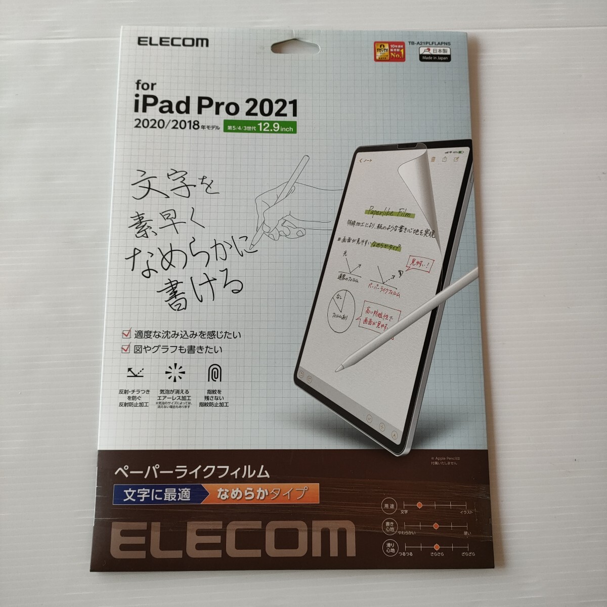 > 【未使用】ELECOM エレコム iPad Pro 12.9inch 第5/4/3世代 (2021/2020/2018)年モデル ペーパーライクフィルム 文字に最適 なめらかタイプ