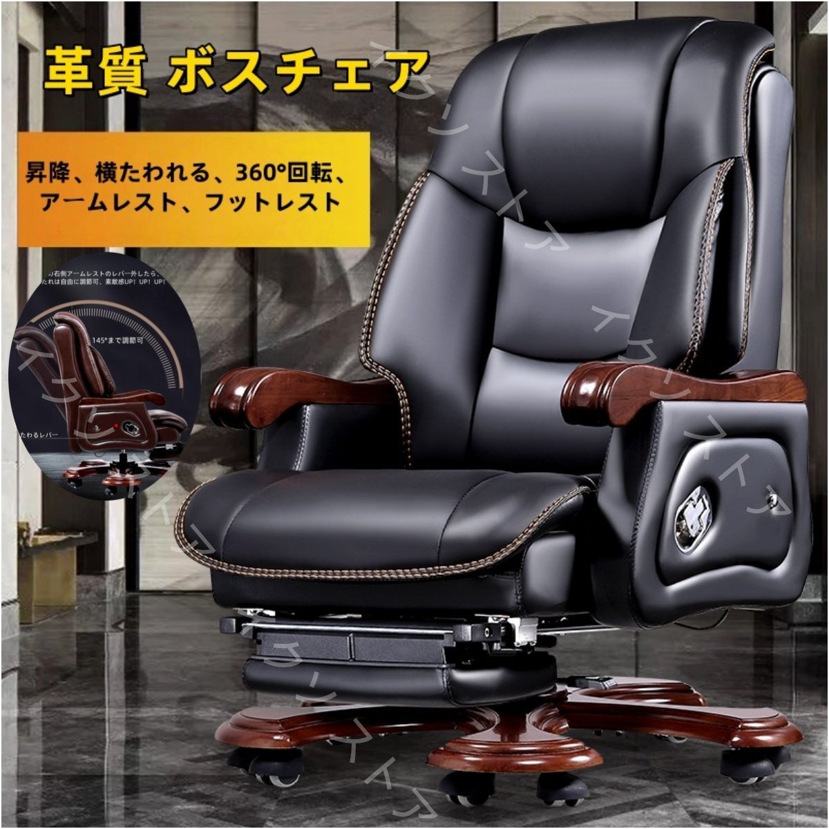 - 社長椅子 ビジネス 本革 ボスチェア 総裁事務椅子 CEOワークチェア 牛革 年長組イス 木製 横たわれる コンピュータ椅子 家庭用 業務用