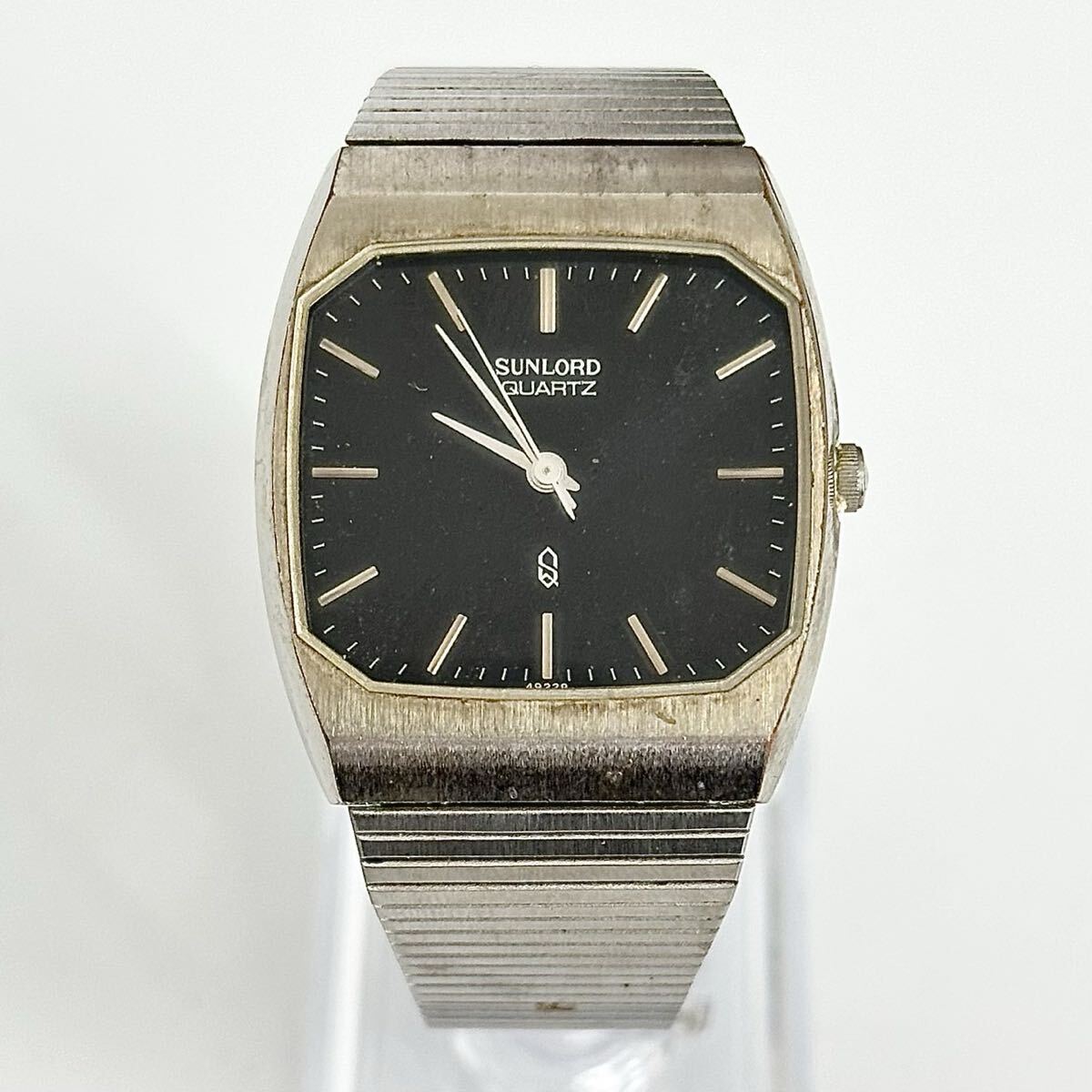 - 【F0906】SUNLORD サンロード 腕時計 クォーツ ブラック文字盤 シルバーカラー スクエア アナログ 3針 メンズ 不動 動作未確認