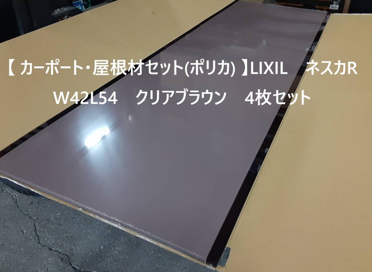 > =引取限定=【 カーポート・屋根材セット(ポリカ) 】LIXIL ネスカR W42L54 クリアブラウン 4枚セット②