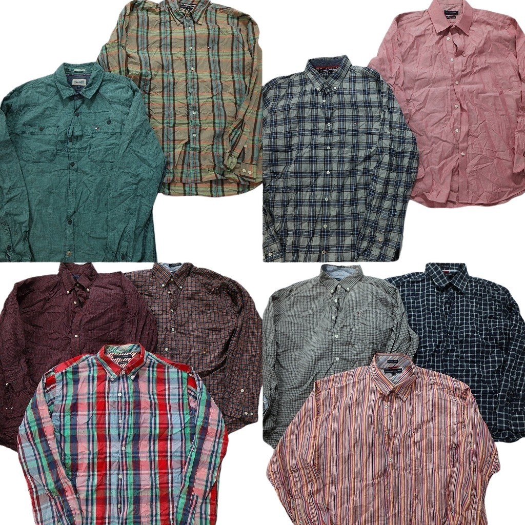 > 古着卸 まとめ売り トミーヒルフィガー 長袖シャツ 10枚セット (メンズ XL ) ストライプ チェック 無地 マルチカラー NB6071 1円スタート