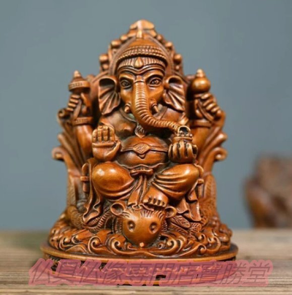 - 【寶勝堂】木彫り 仏像 インドの神様 ガネーシャの置物 ガネーシャ像 ツゲの木彫り 黄楊 柘植 夢を叶える象 金運アップ 開運