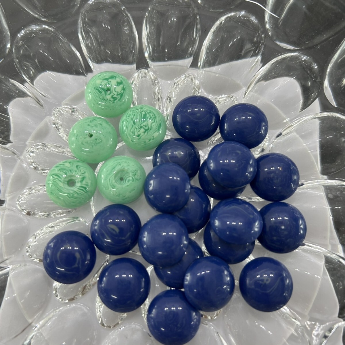 - L21 ☆未使用 大量 プラカボション パーツ ラウンド 約20g 16mm ネイビー グリーン ヴィンテージ アクセ ネックレス イヤリング S-441