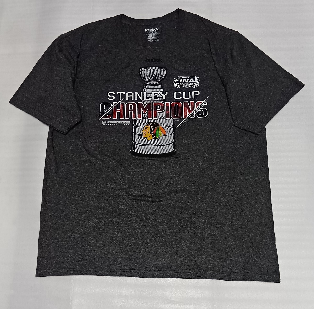> ☆Reebok サイズXL半袖TシャツGLAYグレイSTANLEY CUP CHAMPIONS OFFICIAL LOCKER ROOMティー洗濯済スポーツ ウェア ブランドTEE リーボック