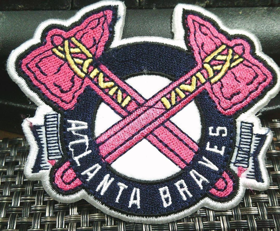 - NM《桃双斧BR》新品MLBアトランタ・ブレーブスAtlanta Braves野球 ベースボール 刺繍ワッペン■野球アメリカ スポーツ メジャーリーグ