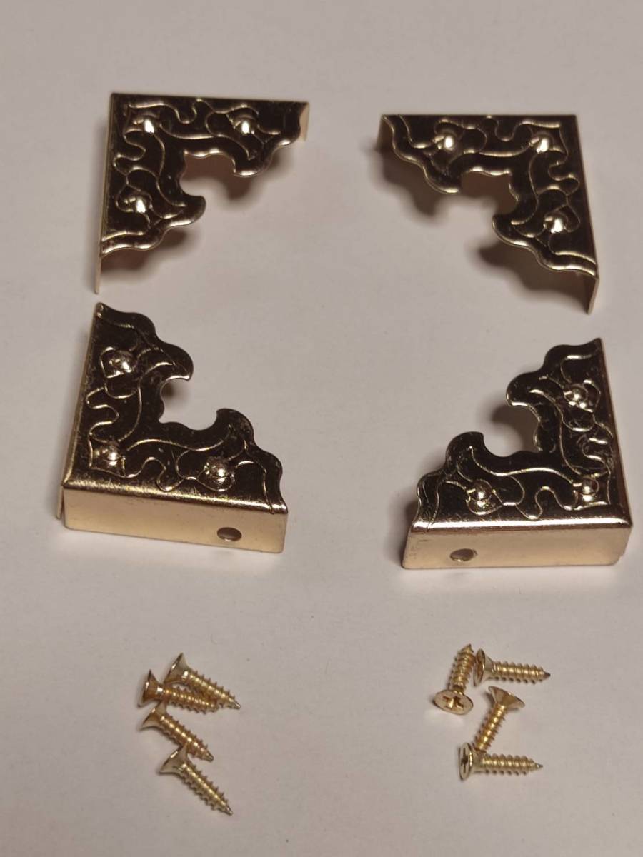 - 送料無料! 扉飾り金具 8個セット アンティーク家具のレストア、DIY木工製作品に最適! 四隅補強金具 隅金具 八双金物 金メッキ
