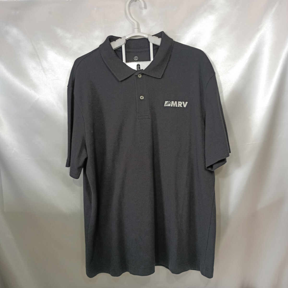 - zaa-142♪USユーズド★ランズエンドLANDS END MRV刺繍ポロシャツブラックUS-L(日本Lサイズ)