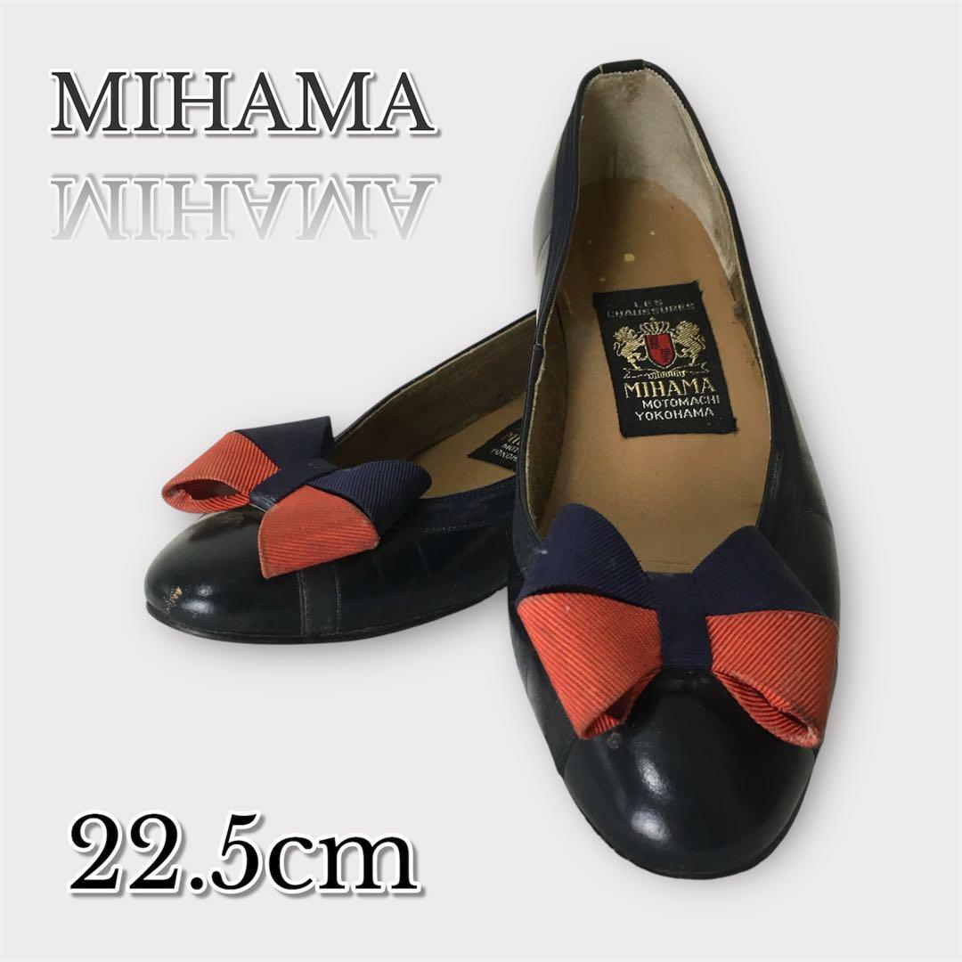 - MIHAMA ミハマ パンプス ローヒール 22.5cm 紺 リボン フォーマル 4478 00796012