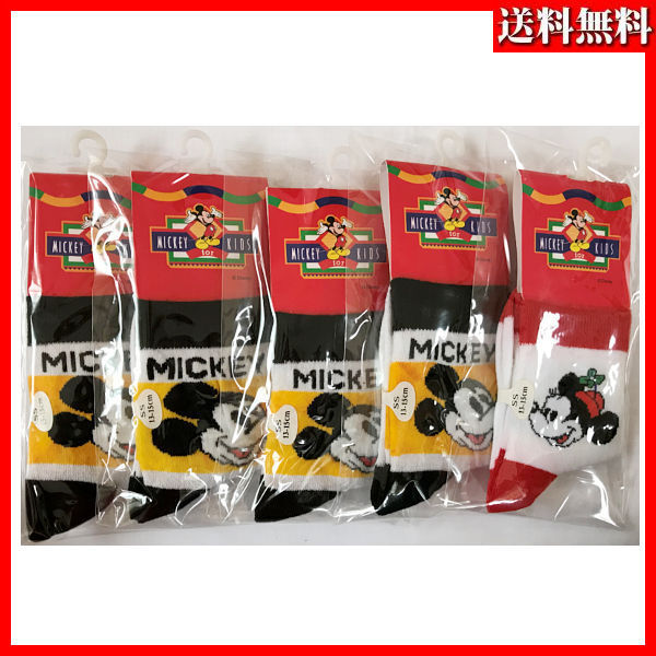 > 【 大幅値下 子供用 靴下】 MICKEY ミッキーマウス( 白×黒×黄)・( 白×赤) ssサイズ( 13~15cm) 2種5点 送料無料 M9