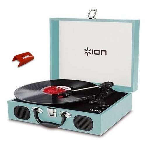 - ION AUDIO VINYL TRANSPORT Blue + PT01RS1 ポータブル トランク型 レコードプレーヤー/純正交換針(1個)セット