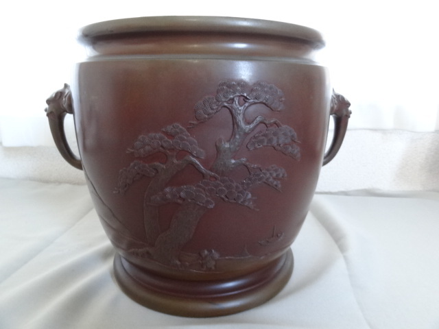 - ■銅製 火鉢 手あぶり 象耳 在銘 約4kg レトロ 現状渡し■