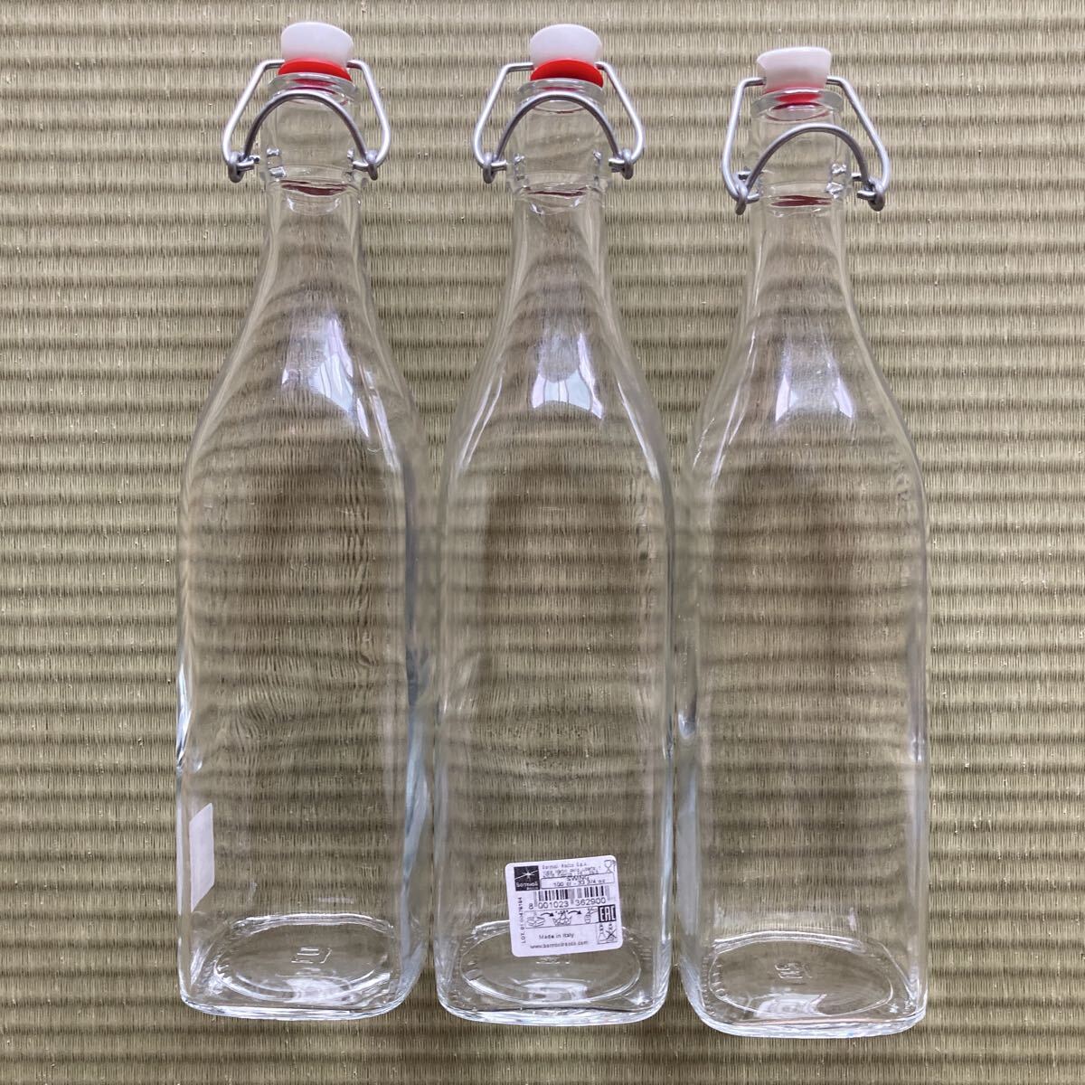 - 未使用 3点 イタリア製 ボルミオリロッコ スイングボトル 角 1L ガラス 調味料入れ 醤油 酒 みりん ガラスボトル ピッチャー 密閉ボトル