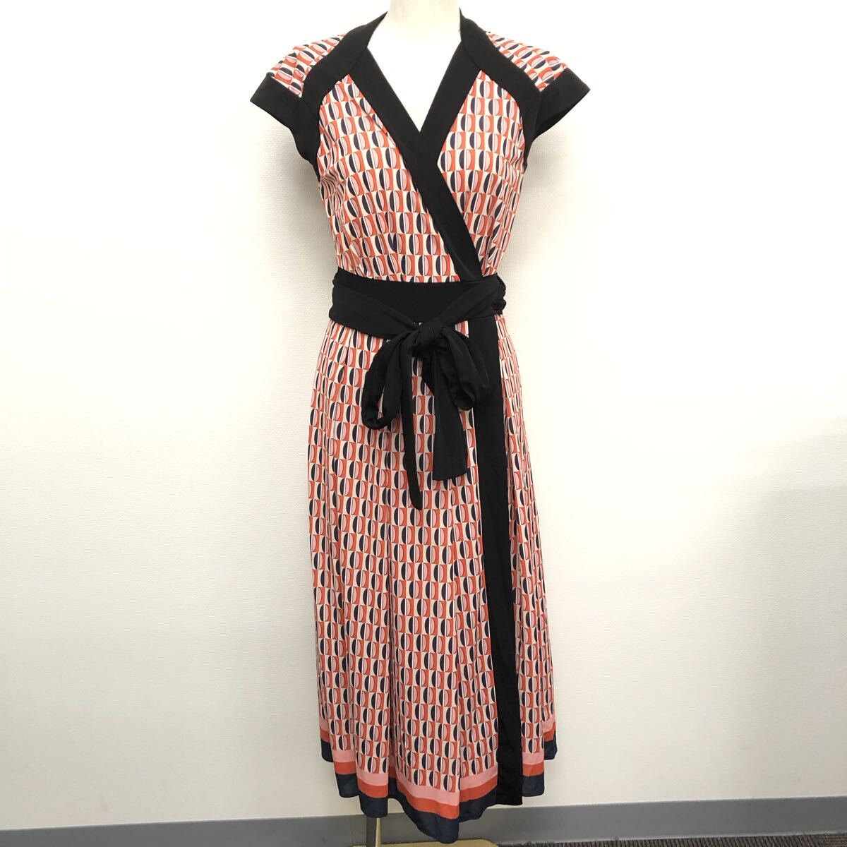 - 【CORCOVADO】コルコバード★カシュクールミディ丈ワンピース サイズM ドレス 総柄 32-222-0007 09