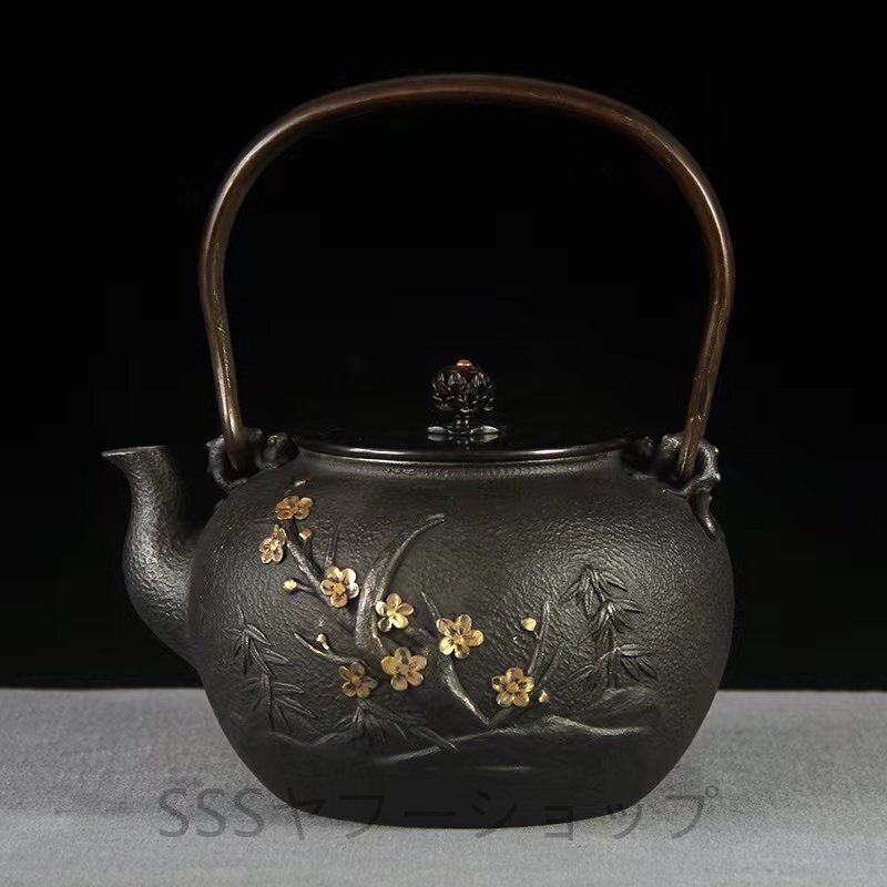 - 美品☆鉄壺 メラン菊 南部鉄器 コーティングなし 手作り鉄 やかんを沸かす お茶の道具 1400ML