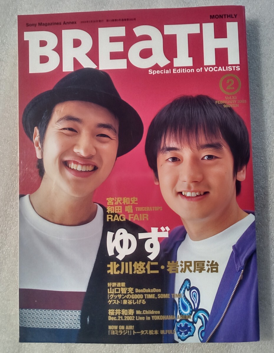 > BREATH ブレス 2003年2月20日発行 ゆず 宮沢和史 和田唱 ラグフェア トータス松本 山口智充 ×泉谷しげる 石坂マサヨ キセル 浅田信一