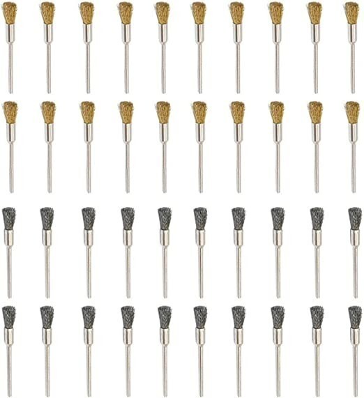 - YFFSFDC ルーター ブラシ 40個入り 筆型 真鍮ワイヤーブラシ 鋼ブラシ 2.35mm軸 研磨ブラシ ドレメル 回転ツール アクセサリー AF364