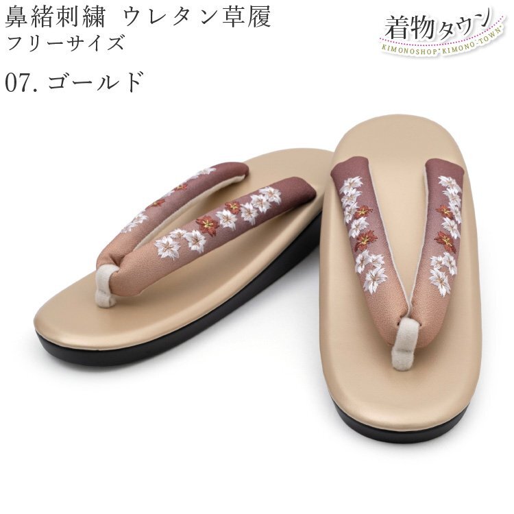 - ☆着物タウン☆ 草履 レディース ウレタン フリーサイズ 鼻緒刺繍 07.ゴールド 金 銀 草履 和装 着物 卒業式 入学式 zouri-00035