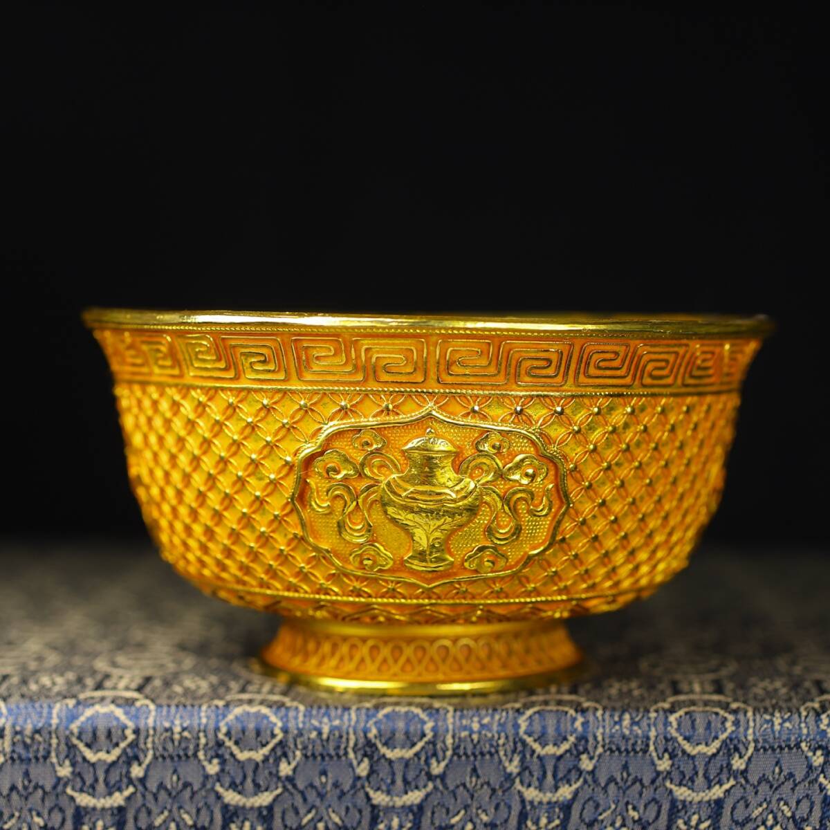 - 蔵友旧蔵出 銅製 塗金 八寶紋 供碗 希少珍品 貴重品 置物 古賞物 密宗密教 供養品 仏教美術品