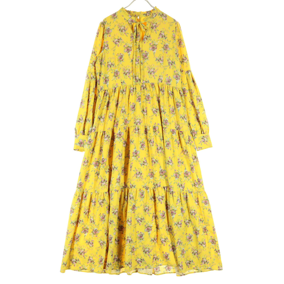 jouetie ジュエティ 花柄 長袖 ロングワンピース M イエロー系 襟元フリル レディース拍卖