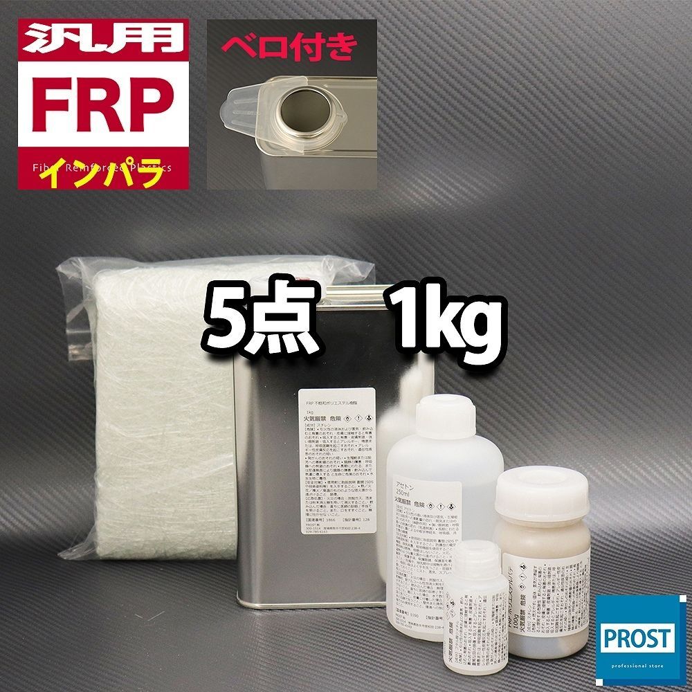 - 汎用 FRP補修5点キット 樹脂1kg 一般積層用 インパラフィン 硬化剤 ガラスマット アセトン パテ付き セット Z25