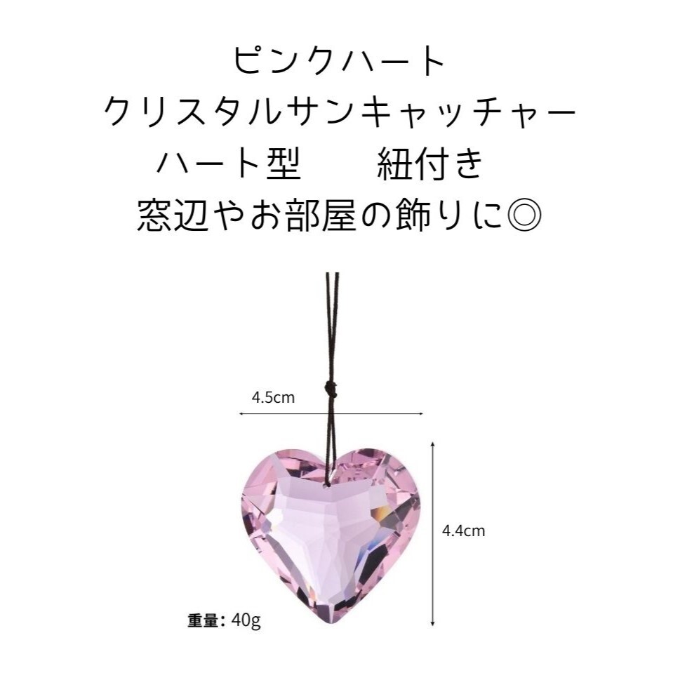 - ピンクハートのクリスタル サンキャッチャーハート型 紐付き 窓辺やお部屋の飾りに◎◎