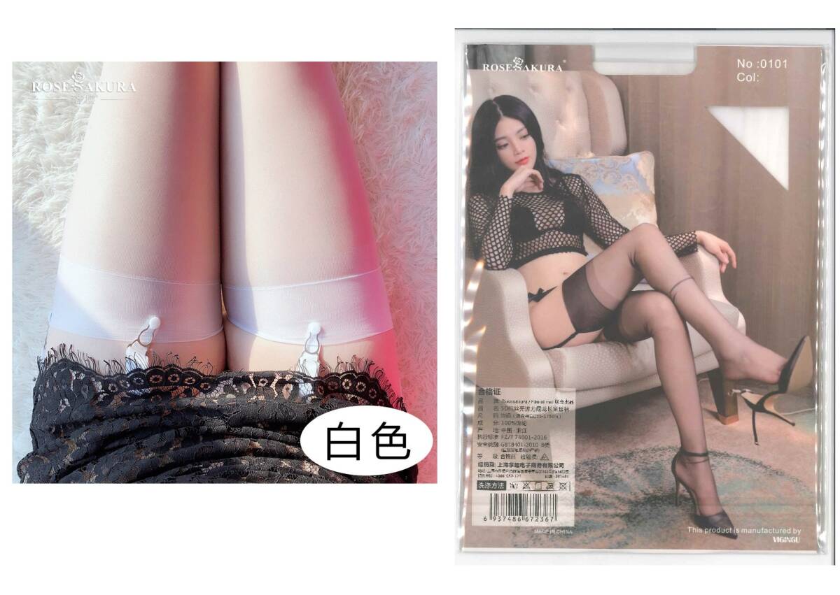 - ホワイト色 Rosesakura/品番0101/5デニール光沢/100%ナイロン/シームレスガーターストッキング