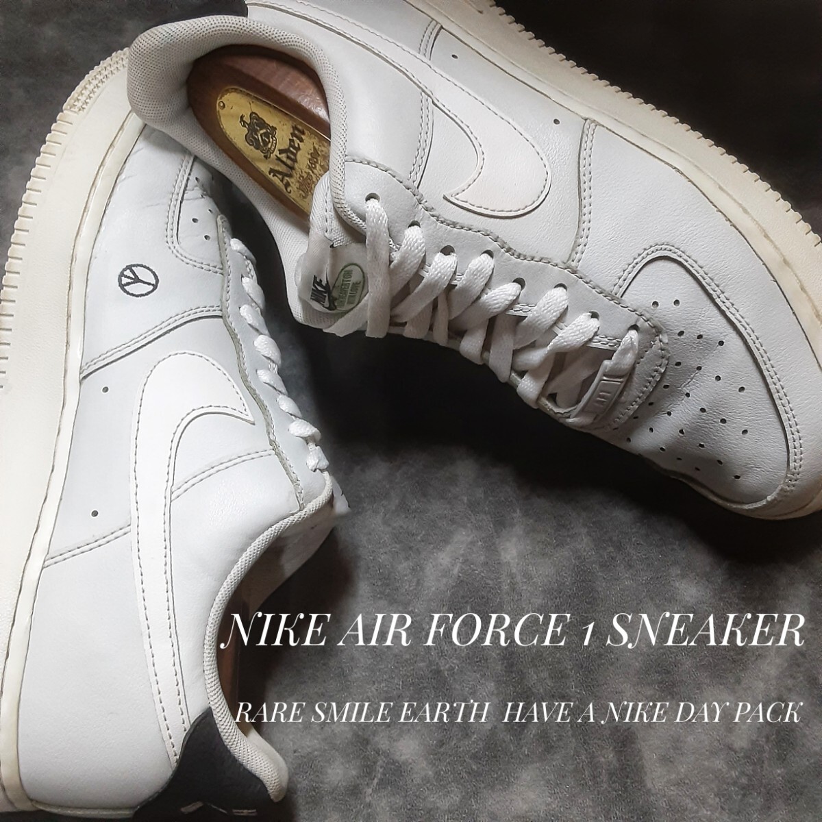 - 最値!希少スマイルアースデザイン!ナイキ エアフォース 1 ハブア ナイキ デイ パック高級レザー スニーカー!グレー×クリーム!灰色 25.5cm