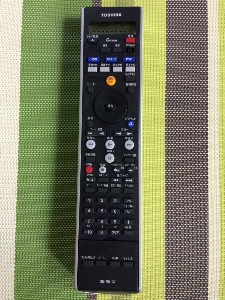 - 送料無料★TOSHIBA★東芝★純正★HDD&DVDレコーダー用リモコン★SE-R0137★中古★動作品★返金保証あり★
