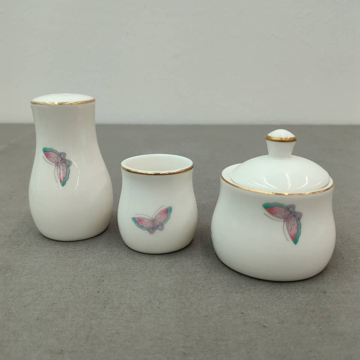 - 070912 295157-8 和光園 カスターセット 3点 調味料入れ 小物入れ 蝶柄デザイン 食卓用品 キッチン小物 食卓雑貨