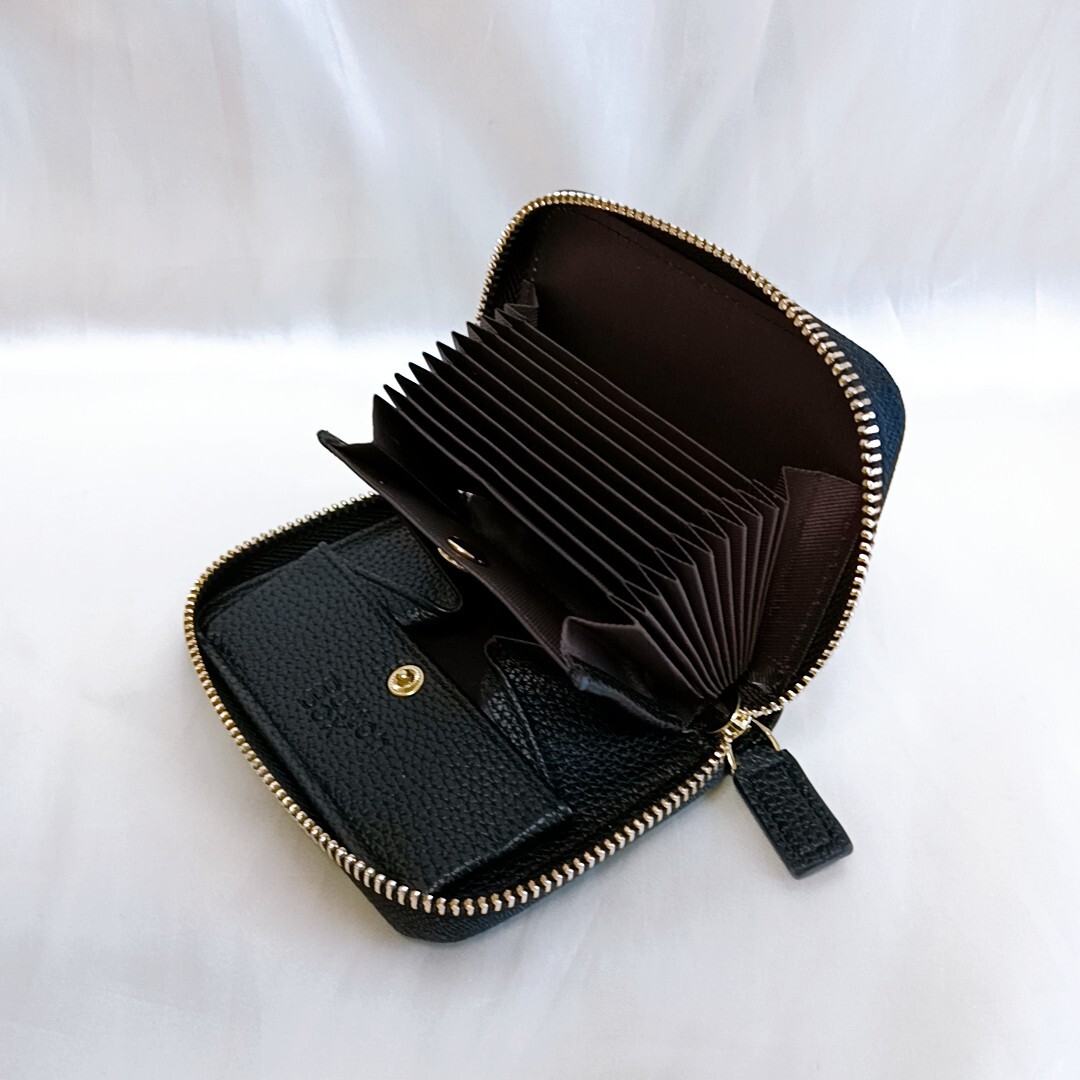 - 【本牛革】ミニ財布 レディース コンパクト 二つ折り財布 ジャバラ式カードケース コインケース ラウンドファスナー コンパクト ブラック