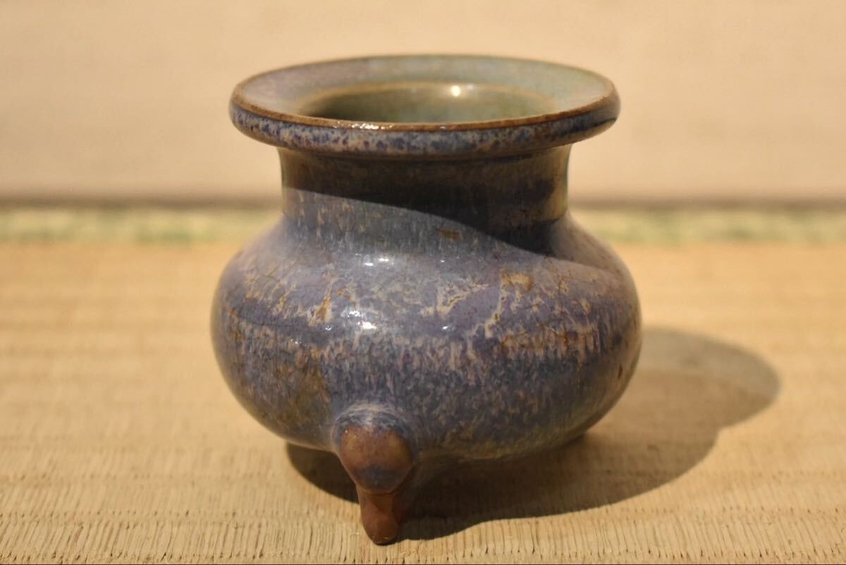 - 【GE】E384【コレクター所蔵品】時代 鈞窯小香炉/中国古玩 中国美術 香道具 小壺 骨董品 時代品 美術品 古美術品 tb