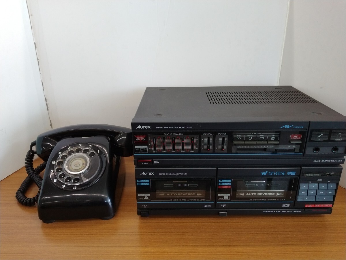 - 【1円スタート】ジャンク品 東芝 ステレオカセットレシーバー 、ダイヤル式 黒電話
