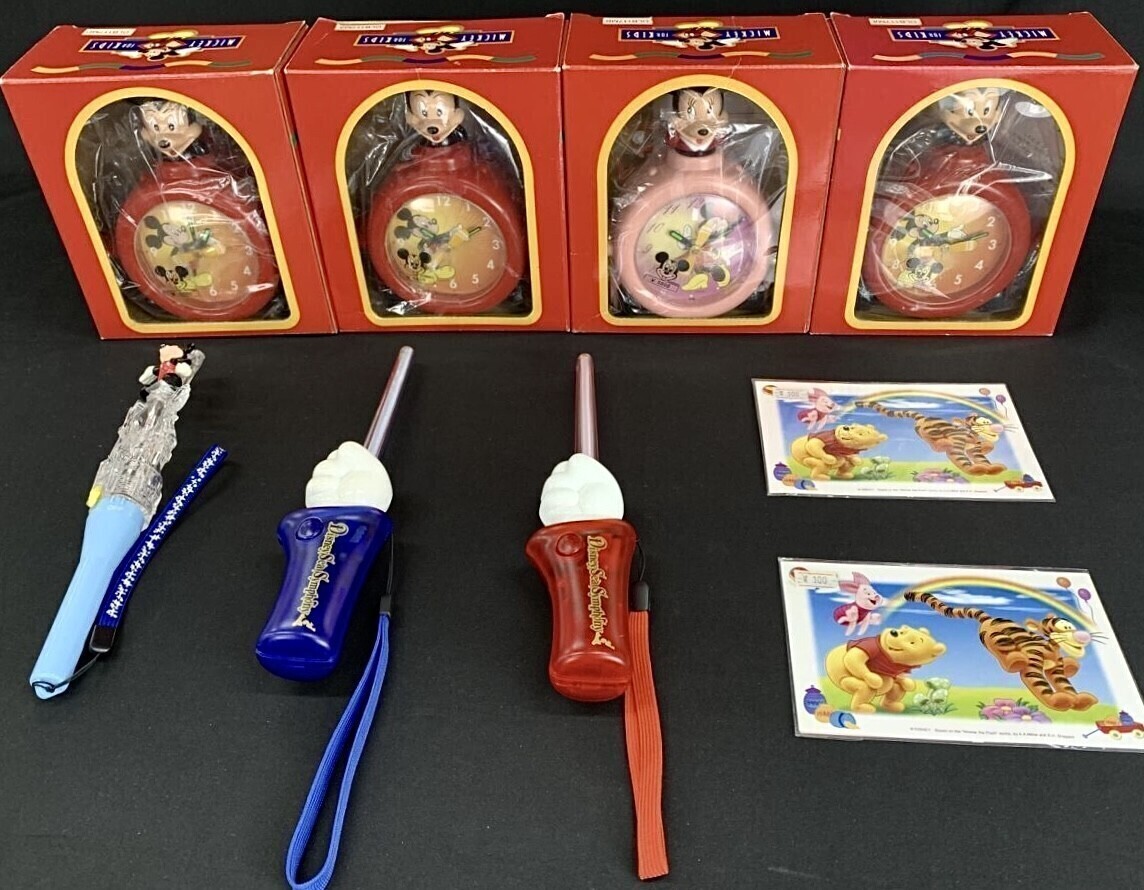 - ミッキーマウス ミニー プーさん Disney グッズ 9点 置時計 ディズニー フラッシュペンライト ポストカード 未開封品 中古品 管57383893