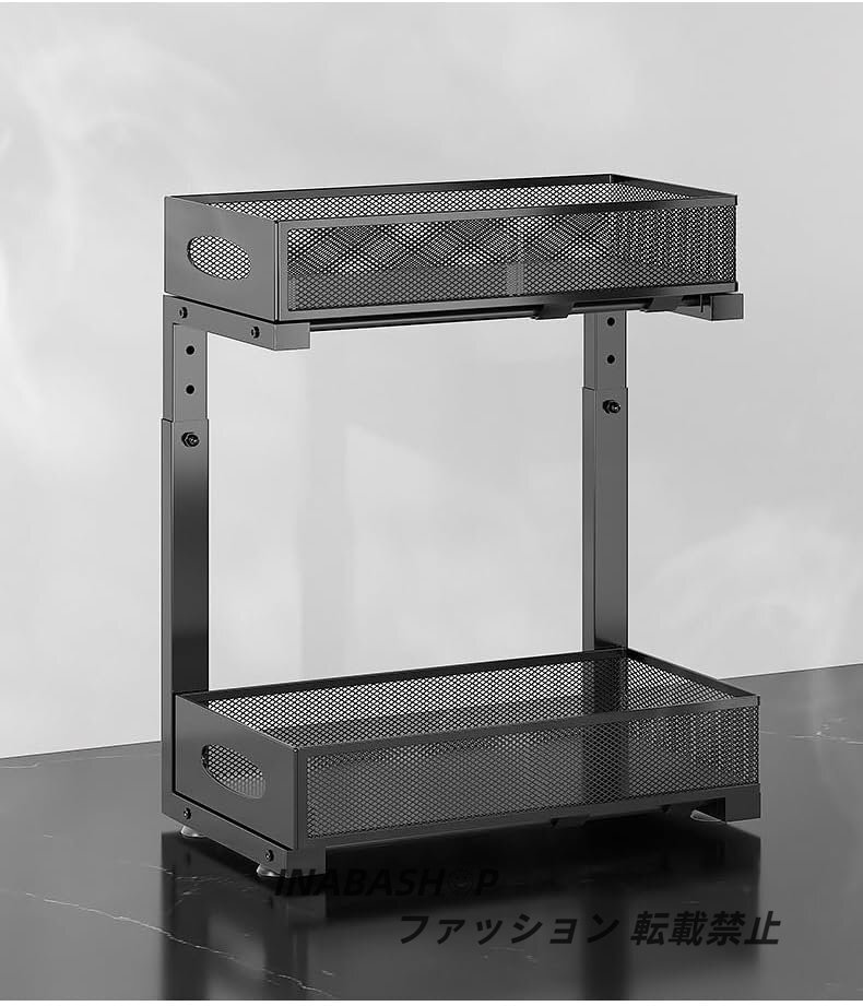 - シンク下 収納 スライド式 2段 引き出し 洗面台下 洗面所 調味料 金属製 高さ調節可能 大容量 組立簡単 省スペース キッチン