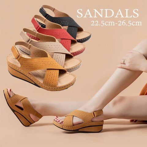 - サンダル スタイルアップ ウェッジソール 通気性 厚底 美脚 脚長 スタイルアップ 26.0cm(42) アプリコット