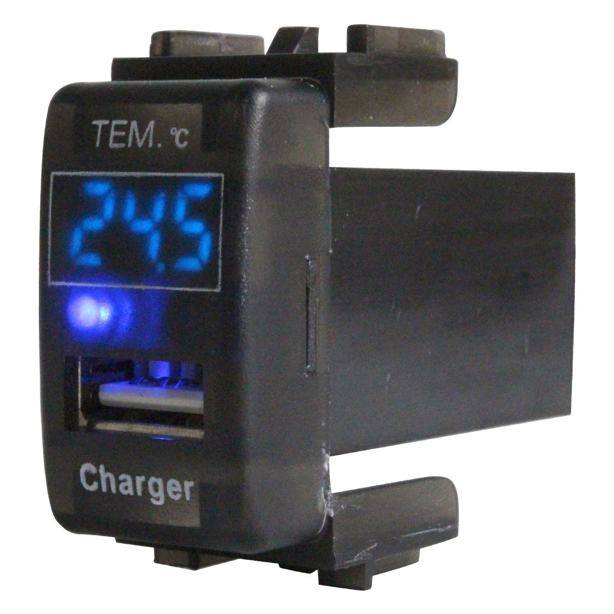- 『ニッサンA』 キューブ Z11 H14.10~H20.11 LED/ブルー 温度計+USBポート 充電 12V 2.1A 増設 パネル USBスイッチホールカバー 電源
