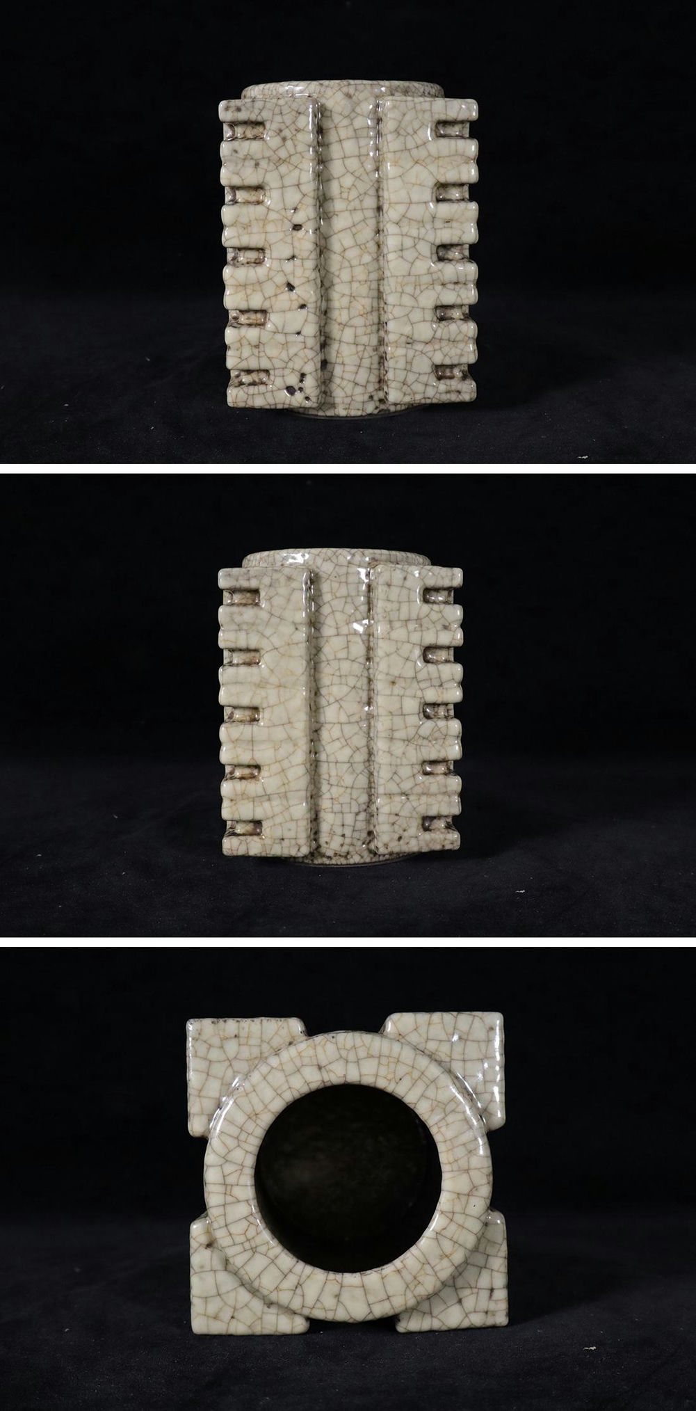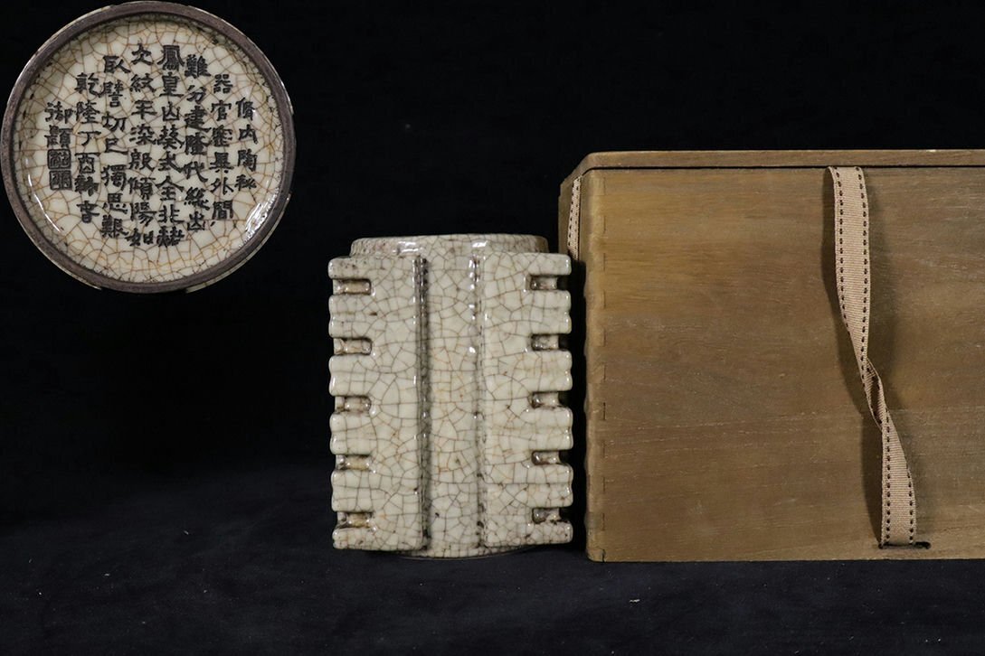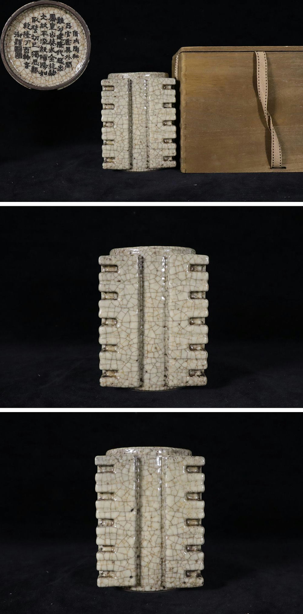 - ◆羽彰・古美術◆Y0743南宋 哥窯米黄釉琮式瓶 御題・古陶磁器 ・珍品旧蔵・古賞物・時代物