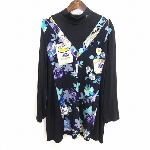 - #w レオナールスポーツ LEONARD SPORT チュニック 44 濃紺 マルチ ぶどう柄 ウール ハイネック カットソー 大きいサイズ [952013] k01