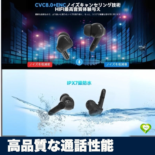 - 【高品質な通話性能】ワイヤレスイヤホン Bluetooth5.4 HIFI音質 ノイズ低減 50時間再生 人気 おすすめ