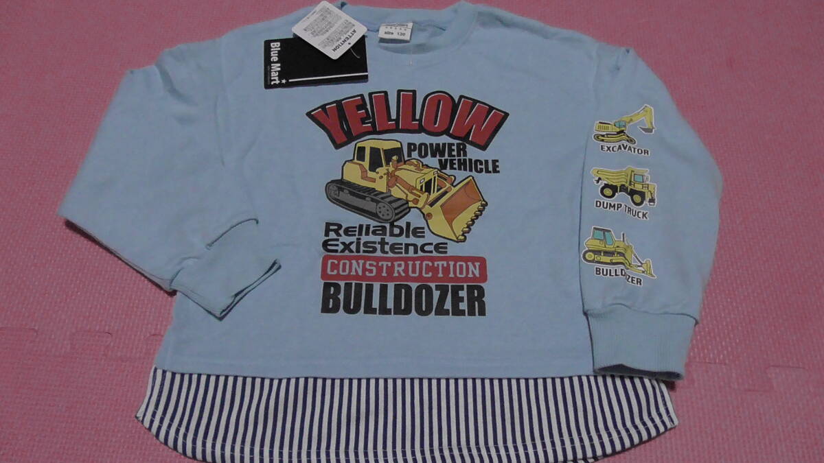 - 新品 120 働く車柄 長袖トレーナー ブルドーザー パワーショベル ダンプトラック 袖プリント 重機 工事車両 男の子 秋物 110cm~ 送料無料