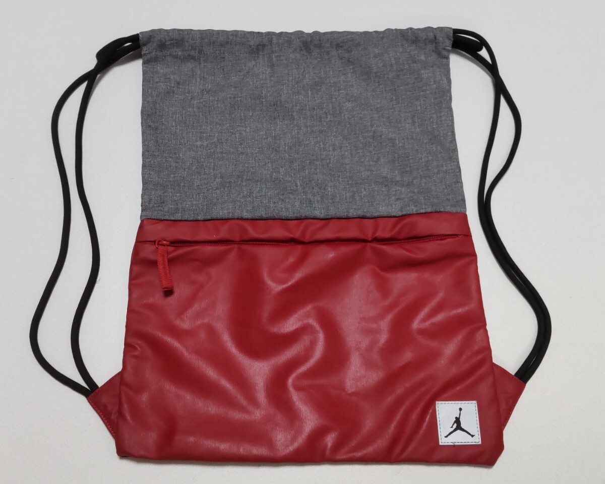 - 送料230円 中古品 ナイキ ジョーダン ナップサック レッド グレー 9A0084 フェイクレザー リュックサック デイバッグ AIR JORDAN NIKE