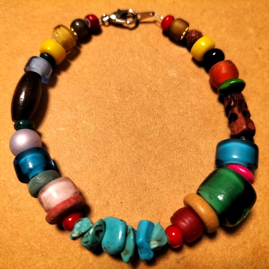 - インディアン ネイティブ ターコイズ ブレスレット ヴィンテージ 極太 ズニ ナバホ オールドビーズ 天然石 とんぼ玉 サントドミンゴ スカル