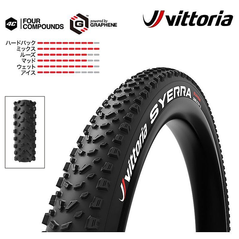 ・SYERRA(シエラ) ・サイズ:29×2.4 ・重量:850g ・ケーシング:ダウンカントリーTLR ・TPI:60TPI ・コンパウンド:4C Graphene ・構造:TLR+APF(アンチピンチフラット) |