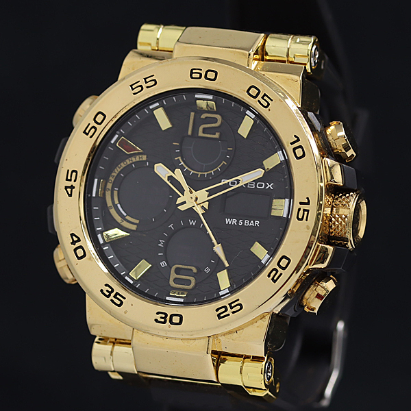 - 稼働 箱付 FOXBOX QZ デジアナ ブラック文字盤 メンズ腕時計 YUM 2000000 NSK