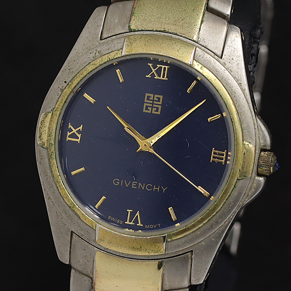 > 稼働 ジバンシイ QZ AN.17.0 ブラック文字盤 ラウンド シルバー×ゴールド メンズ腕時計 2000000 NSK OMI