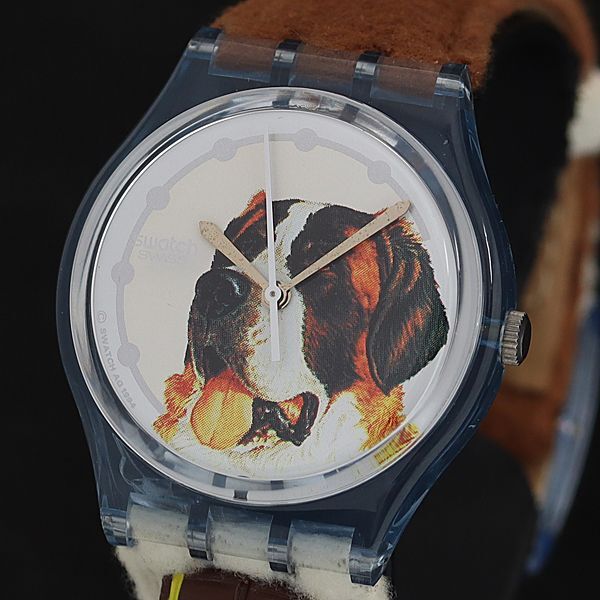 - 保/箱付 稼働 良品 スウォッチ QZ マルチカラー文字盤 犬 メンズ腕時計 OSW 2000000 NSK