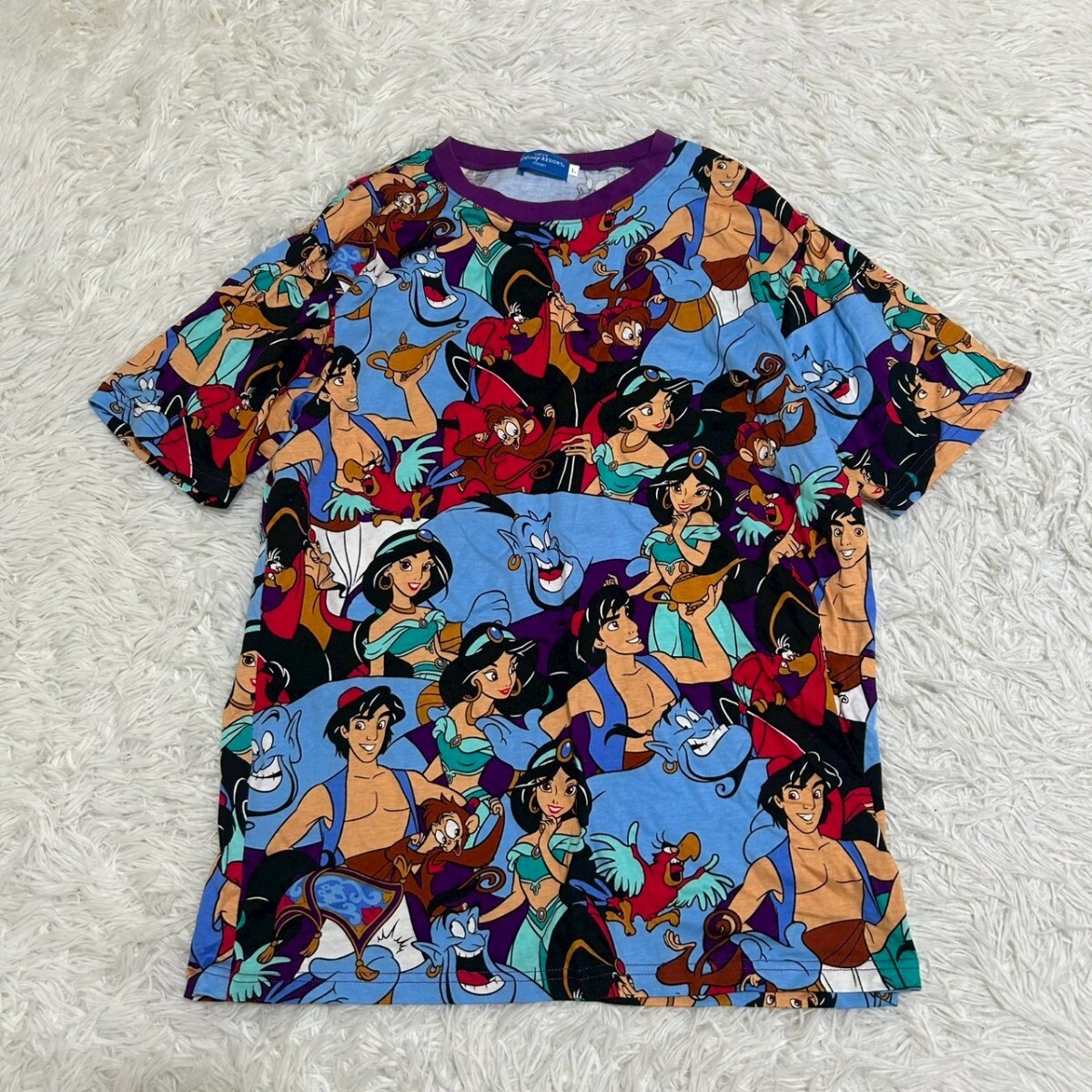 - Disney ディズニー Tシャツ カットソー 総柄 アラジン サイズL 半袖シャツ