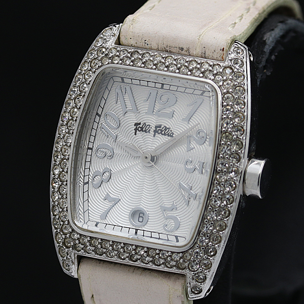 - フォリフォリ ストーンベゼル デイト QZ シルバー /ホワイト文字盤 レディース腕時計 TKD 2000000 NSK