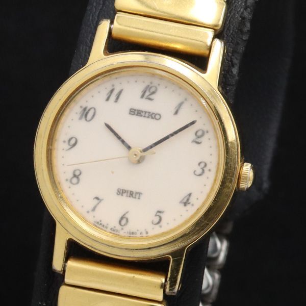 - 稼働 セイコー スピリット 4N21-0640 QZ アイボリー文字盤 レディース腕時計 TKD 2000000 NSK